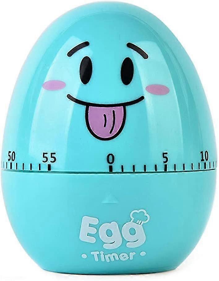 new and high quality Cute cartoon egg appearance with mechanical clockwork 1-60 minutes, set the number of minutes required for cooking, the bell will ring when the set time is reached Easy to operate, no battery required, eco-friendly. Suitable for cooking, baking, learning and more. Suggested use: Take 5 minutes as an example, the arrow points to the beginning of 0, 55 minutes clockwise and 5 minutes counterclockwise. The timer will automatically sound when it reaches 0 (no matter how many minutes you want to set, it must be55 minutes before closing) Specifications: Color: blue Material: ABS Size: about 8*6.5cm Packages included: 1*timer