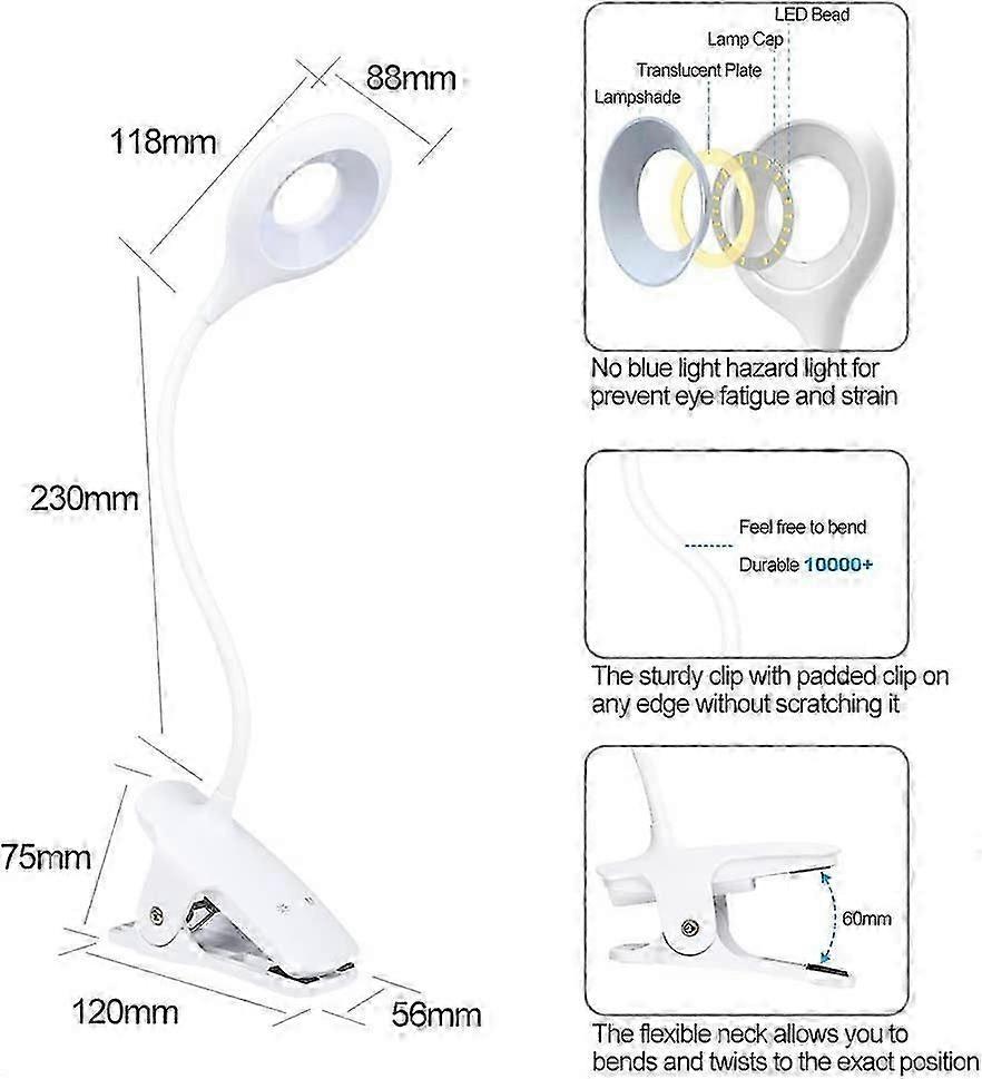 LED Reading Light, 9 Different Settings Eye Protect Book Clip Light, USB Rechargeable Reading Light