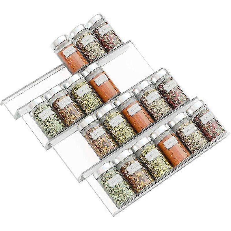 levels - PVC extendable spice rack for kitchen drawer - transparent drawer storage for spices, condiments, herbs, etc.