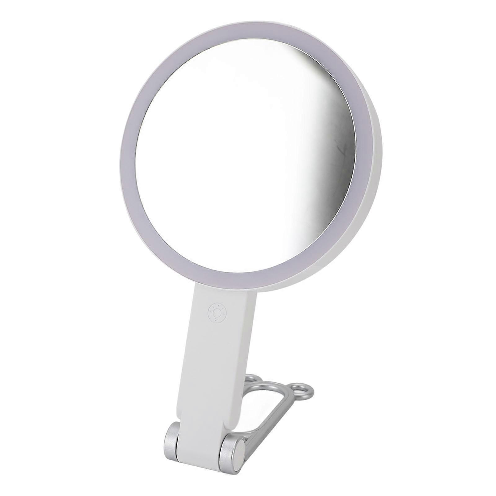 Lighted Makeup Mirror 1X/10X Magnifying Mirror Destop Wall Mount and Handheld Makeup Mirror with Light White Item Type: LED Magnifying Makeup MirrorMaterial: ABS, Glass, PCBA Battery: Built in rechargeable battery 1000mAH Input Voltage: 5V Input Current: 1A Charging Time: 2 hours Battery Life: High brightness 3 hours, low brightness 4.5 hours, auto power off after 20 minutes of inactivity Number of LED Light Chips: 64 Color Temperature: Three colors (3000K, 5500K, 8000K) Brightness: Stepless dimming Magnification: 10X Double Sided Mirror: One side with 10X magnification, one with 1X flat mirror Usage: Travel, business trip, bathroom, bedroom, touch up on the go Mirror Diameter: Approx. 16cm / 6.3in