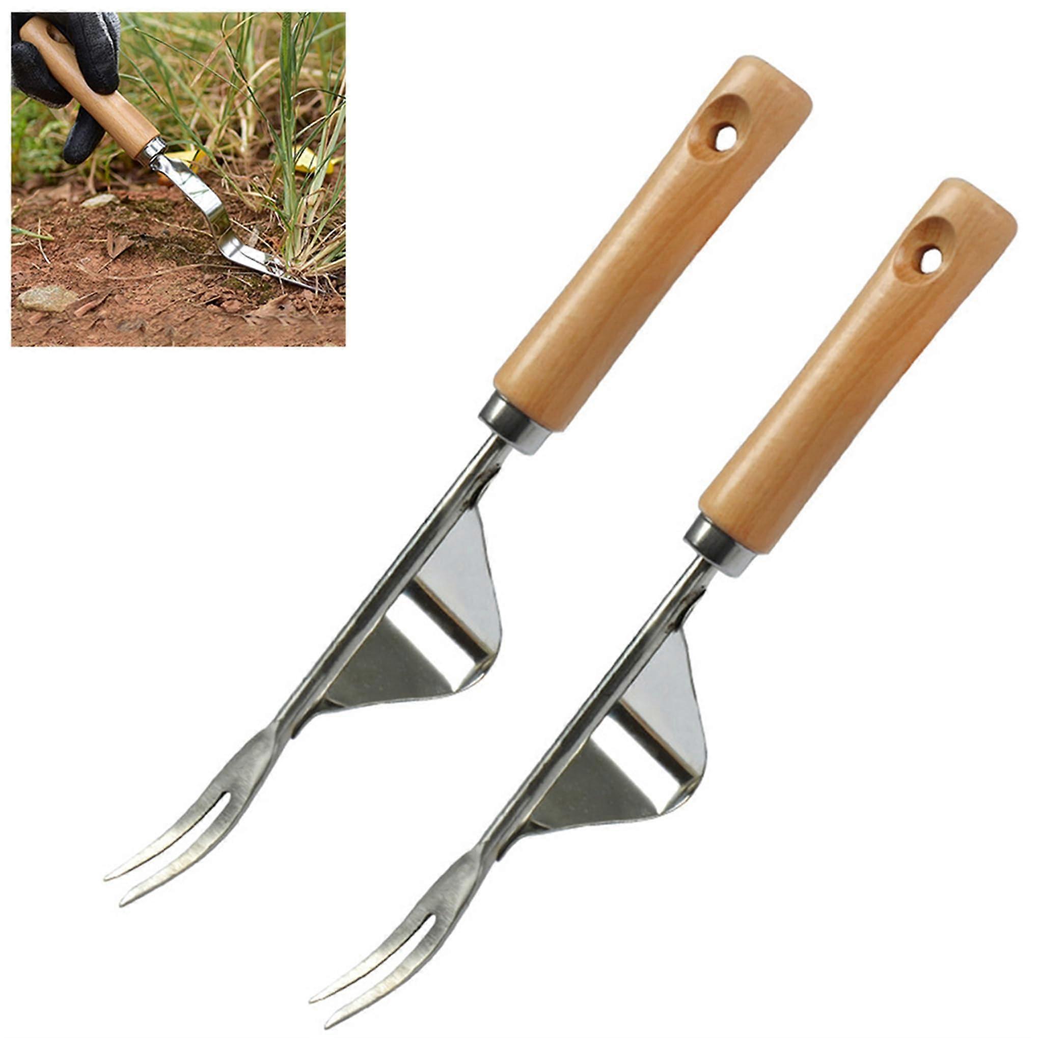 Manual Weeding Tools Garden Weeder 2 Pieces Stainless Steel Lever Base Creates Perfect Angle Easily Weed and Dig Deep V-Cut Manual Weeder