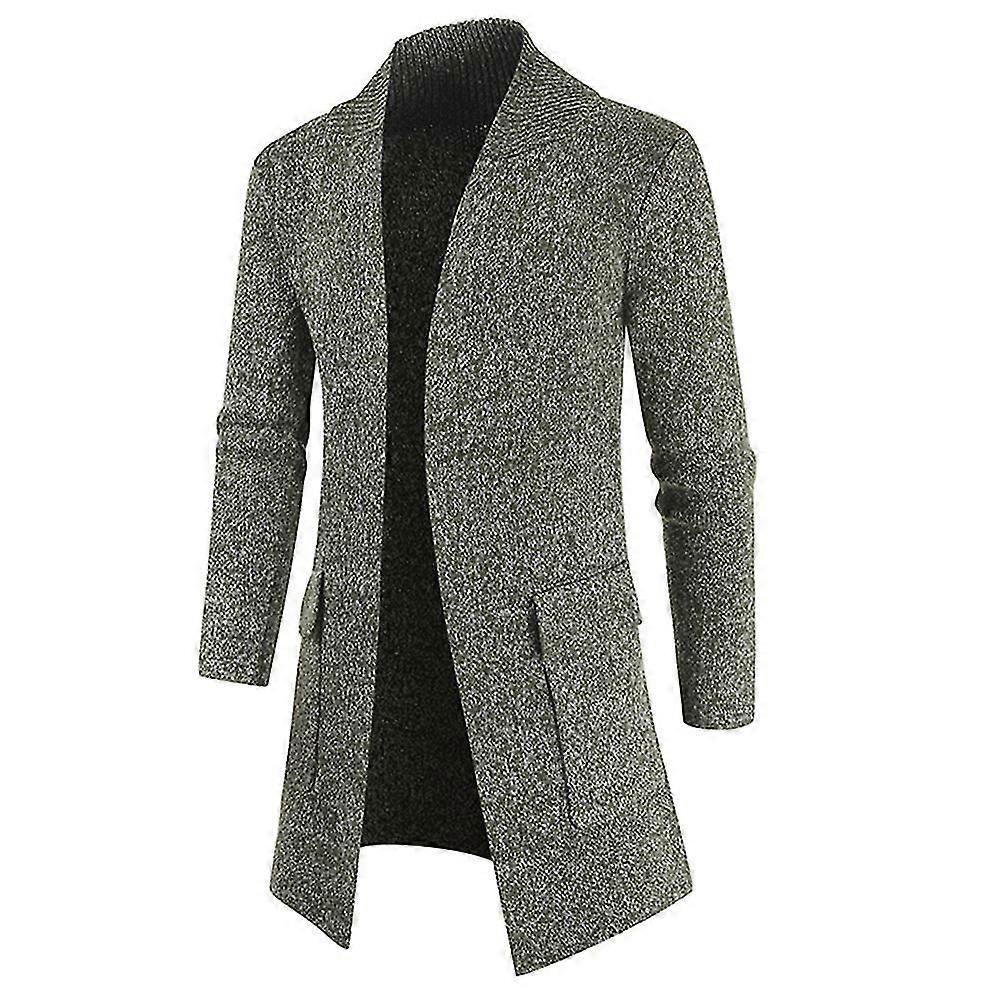 Mens Casual Solid Color Knitted Long Jacket