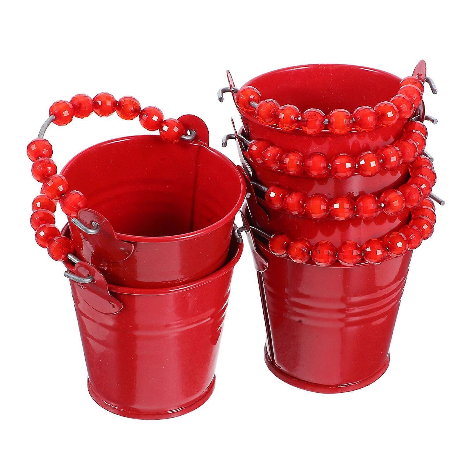 Mini Buckets for Party Favors with Beaded Handles 6Pcs Red Iron Buckets