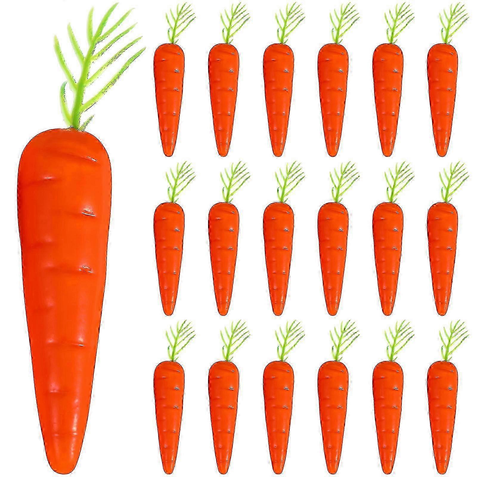 Description These carrot models are carefully crafted with safe and reliable materials that are not easy to damage and deform. With realistic textures and leaves. The exquisite exterior design can greatly echo the theme of Easter parties and can be used as Easter basket filler favors, or home, kitchen, garden decoration. Features - Color: Orange and green - Material: Foam and plastic - Size: About 6 x 1.5 cm or 2.36 x 0.59 inches - Simulation design: Small carrots are decorated with realistic textures and leaves, made with superb simulation technology. - Easter carrots: Rabbits and carrots are fun Easter elements, these tiny carrots are a great echo and ornament to Easter parties. - Delicate decoration: Fake carrots can also be used as miniature landscape props, or used to decorate potted plants, kitchens, and gardens. - Early education toys: As great teaching vegetable toys for children, let them know about carrots, and use them as a simulated kitchen toy. - Premium material: Made of plastic and foam, not easy to be damaged and deformed, and you can use it with confidence.Package List25 x Small carrots ornaments Note: Due to the light and screen setting difference, the item's color may be slightly different from the pictures. Please allow slight dimension difference due to different manual measurement.