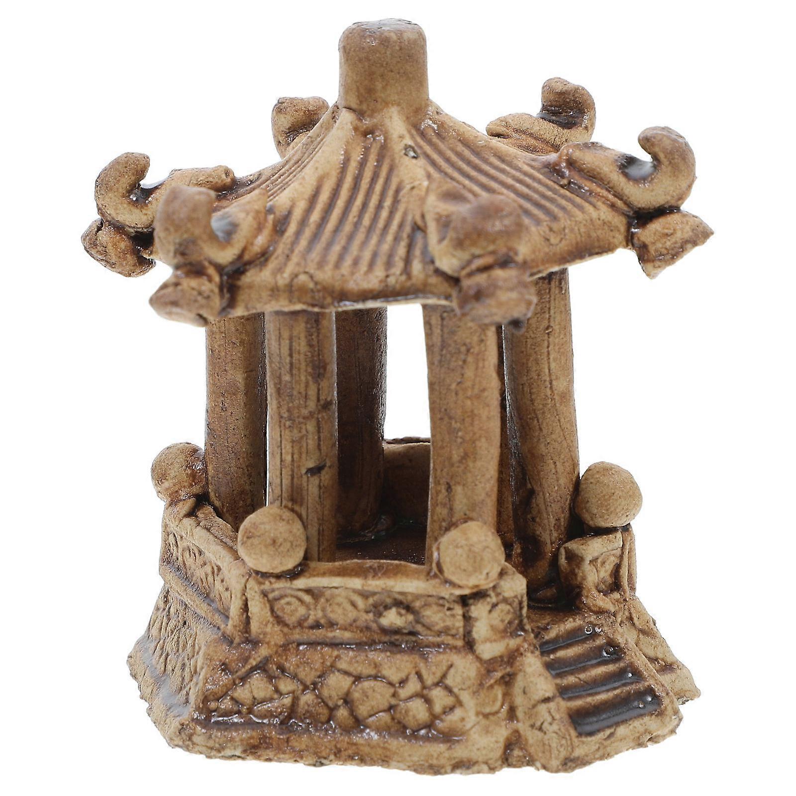 Miniature Ceramic Statue 3Pcs Hexagonal Pavilion Decor For Zen Garden Creating Serene Atmosphere Indoor
