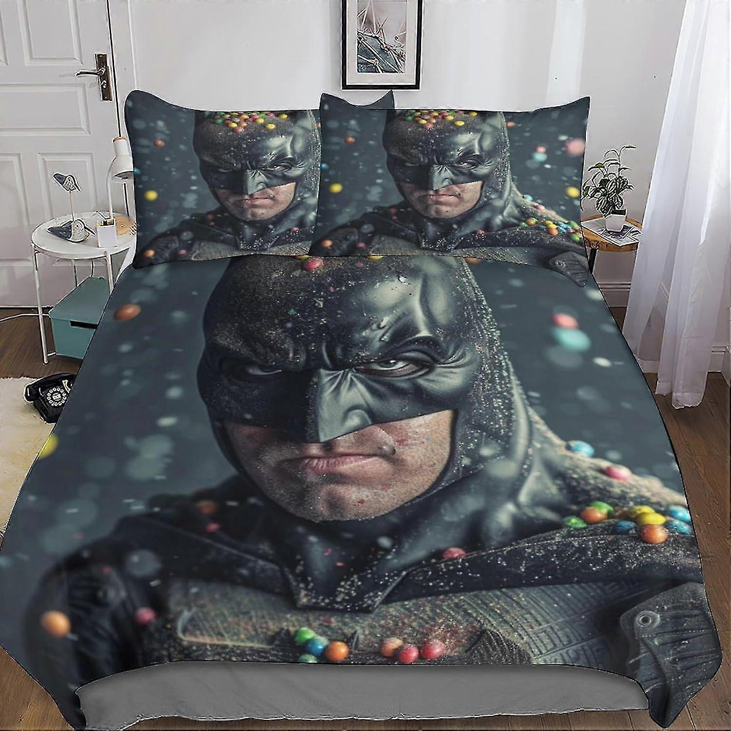 Modern Batman-Themed Comforter Cover Set with Hidden Zipper - Trendy Microfiber Bedding with 3D Print, 3-Piece Set with Pillowcase