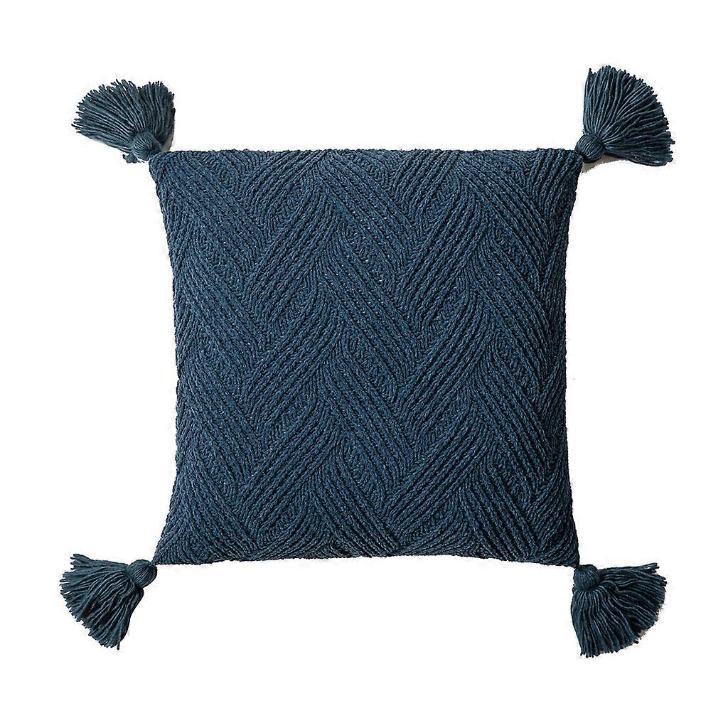 Nordic Style Solid Color Throw Pillow for Case with Tassels Chenille Cable Knitted Striped Pattern Decorative Square Cushion Cover for Sofa Bedroom
