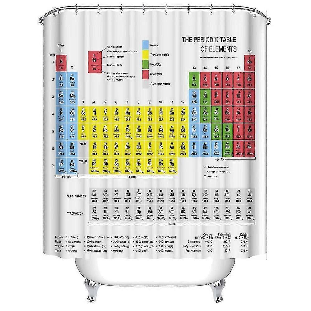Periodic Table of Elements Shower Curtain Durable Waterproof Fabric with 12 Hooks 180x180cm