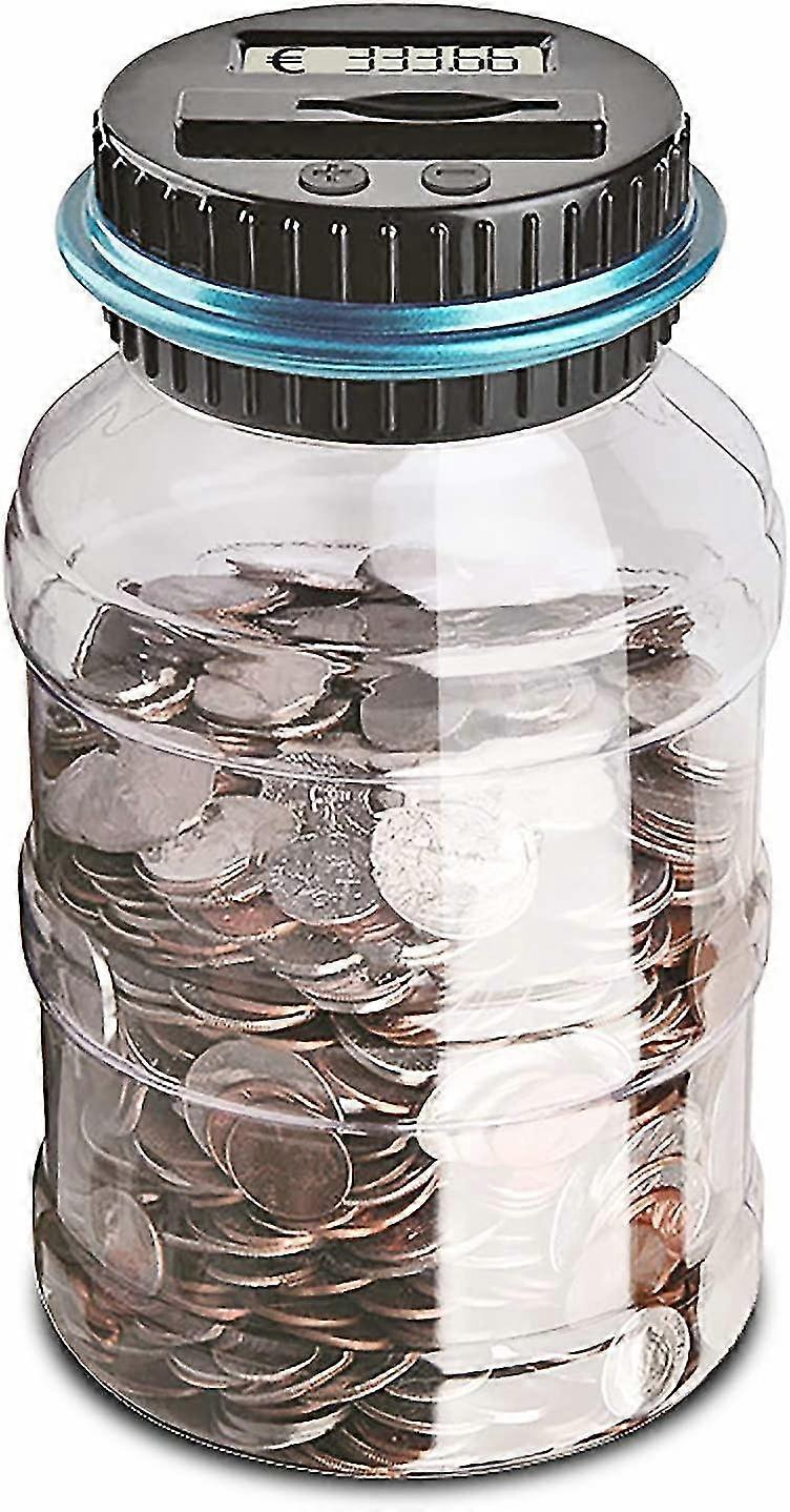 This piggy bank has a counting system with an LCD display on the lid that counts coins as they slide through the slot. The system counts coins and displays the total after each deposit. This jar is made of ABS, so its less brittle than glass for easy storage at home. All GBP coins in circulation in the UK are accepted. The lid is easy to unscrew. Large capacity - Holds up to 800 coins. Large bottleneck allows you to easily remove parts; powered by 2 AAA batteries (not included). A fun way to save money and keep all your coins, the perfect gift for kids pocket money. Features: Material: ABS and polycarbonate. Quantity: 1 piggy bank. Color: transparent jar. Power supply: 2 AAA type batteries (not included). Dimensions: 7.5 x 11.3x20 cm Package content 1 piggy bank.