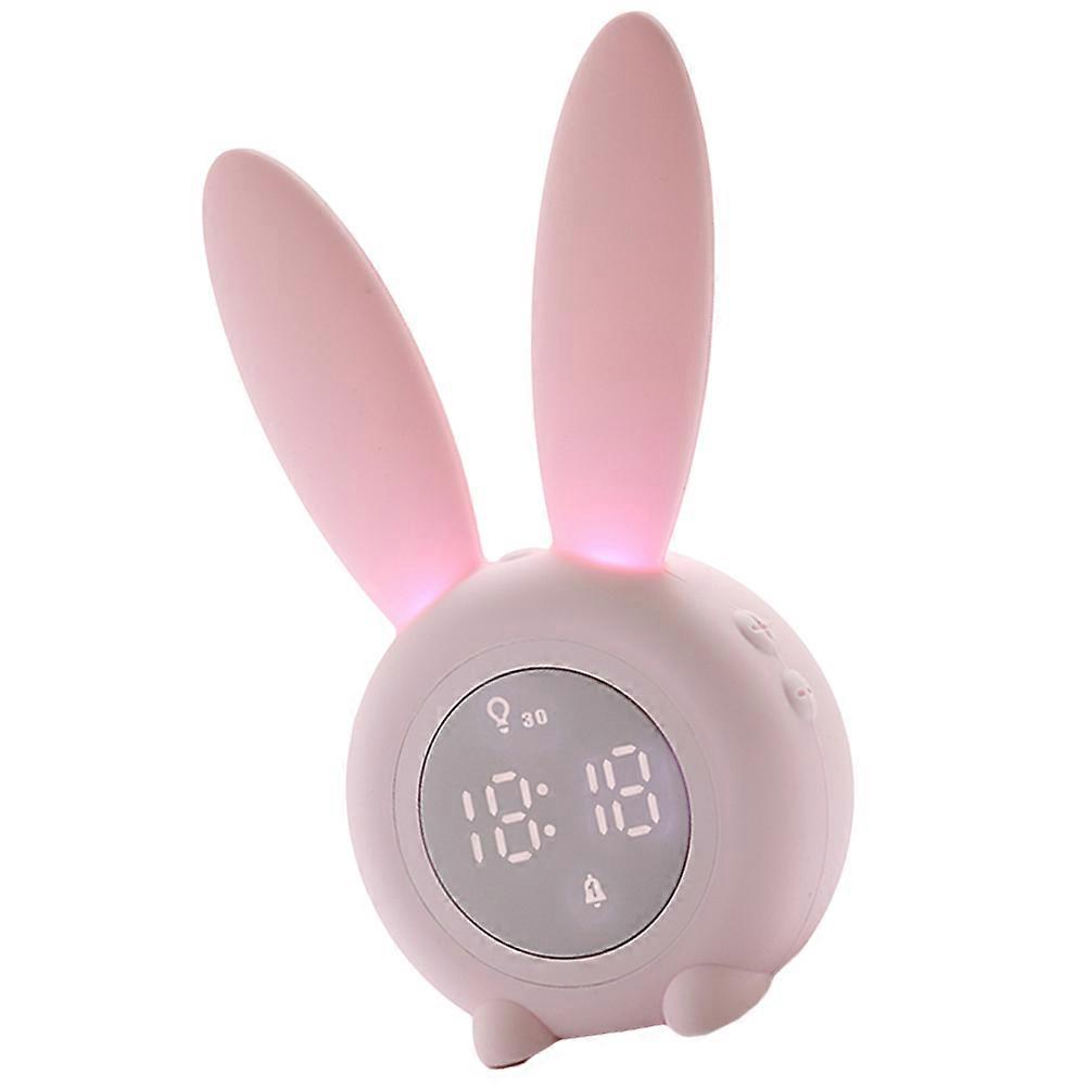 Pink Rabbit Clock with LED Light for Night and Magnetic Hanging Effect ABS Material Small Desktop Alarm Clock 4.5x3.5 Inches