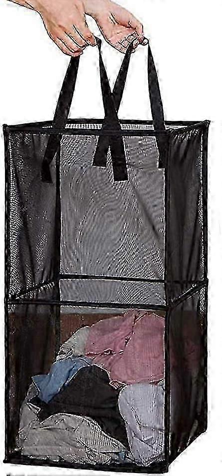 Pop Up Laundry Baskets - Mesh Collapsible Laundry Hampers Storage with Handle - Foldable (Black/Double Layer)