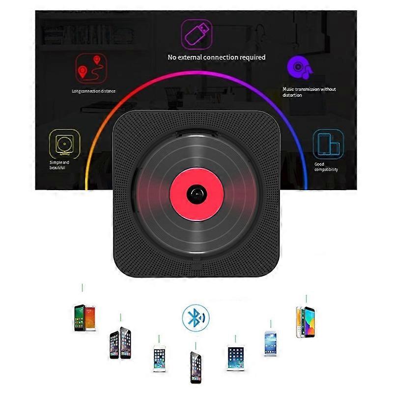 Portable CD Player Bluetooth Speaker Stereo LED Screen Wall Mount CD Music Player With Bracket FM Radio