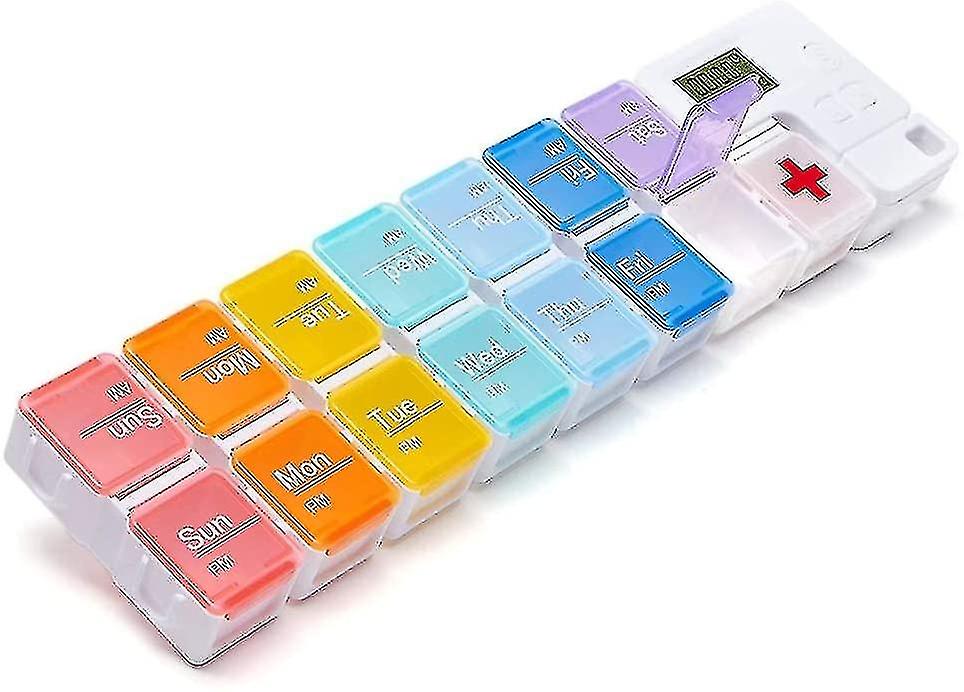 Portable pill box with smart reminder alarm, 14 compartment smart electronic digital timer AM and PM