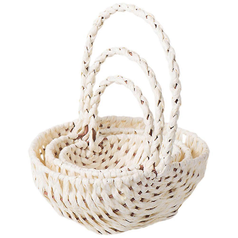 Portable Storage Basket with Handle for Home Use Made of Durable Paper Weaving Beige