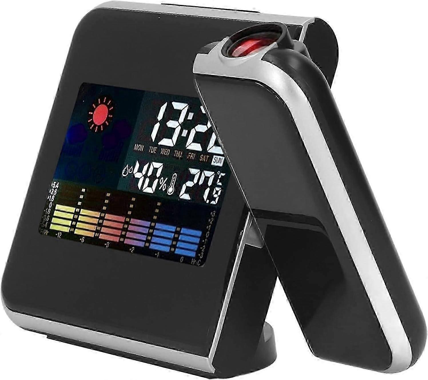 Projection Alarm Clock, Weather Clock Bedside with 180 Projector, LCD Digital Clock with 12/24H for Bedroom -Qin