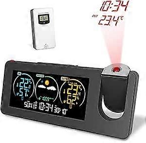 Projection Alarm Clock, Weather Monitor, Wireless Weather Station with Outdoor Sensor, Temperature and Humidity Monitor, with Colorful Backlight and W
