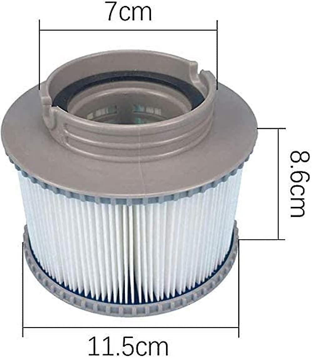 Product Name: Pool Filter. Applies To: MSPA FD2089 Product Size: As Shown Shipping Quantity: 4 pieces Product color: gray 1.120 ply cartridge filter, durable and tidy filters for mspa. 2.Model: 8.6 cm (3.4 inches) in length by 11.5 cm (4.5 inches) in diameter 3.Underside: 6 small flat holes for steam 4.Filter cartridge compatible with MSPA models: for Uscany, for Elegance, for Camaro, for Alpine, for Blue Sea, and for Silver Cloud. 5. The filter helps remove dirt and germs, giving you clean, fresh water, making it a necessary replacement part for home pools.
