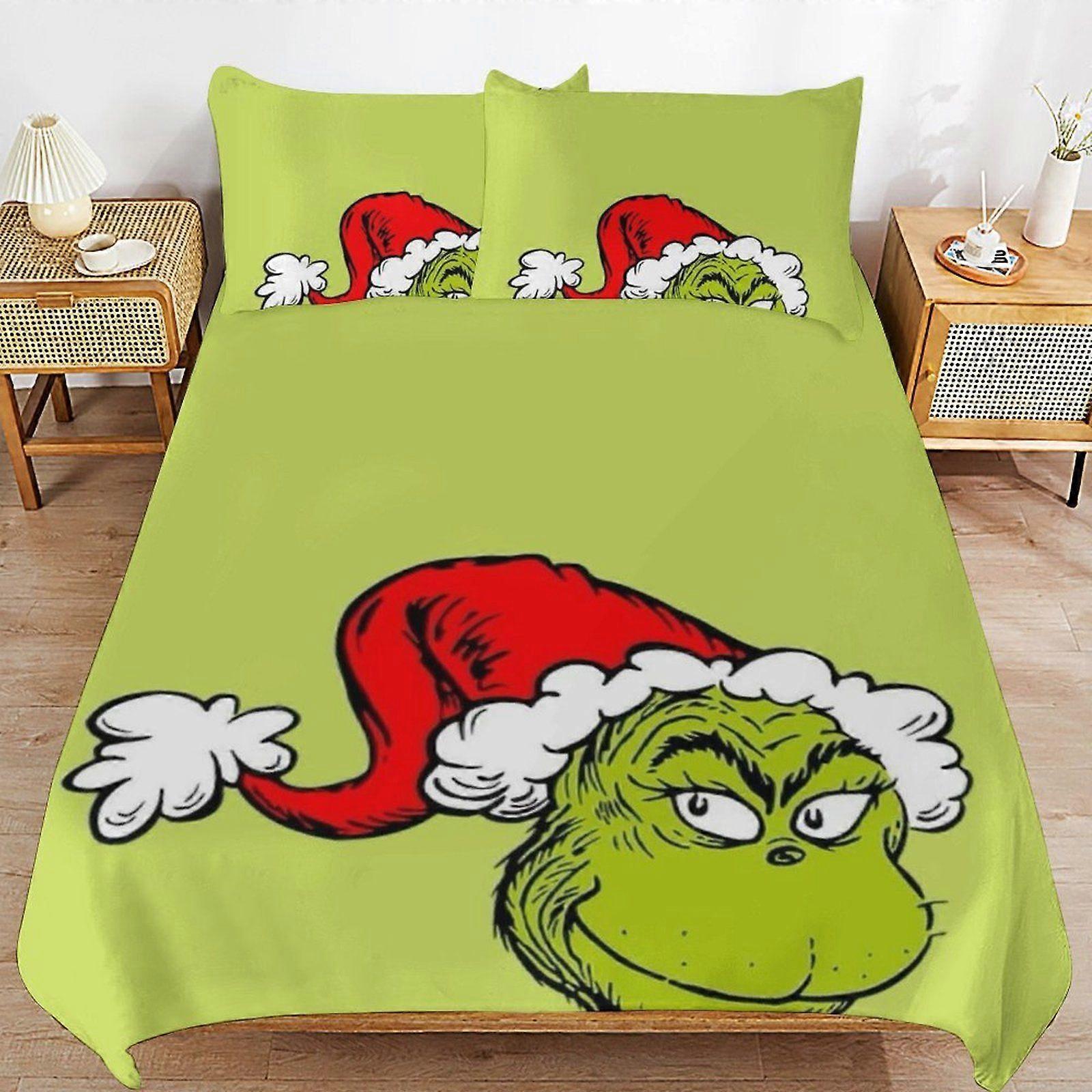 q56 The Grinch Breathable Layer Comfortable Feel Soft Durable Fabric Bedding Duvet Cover Sets with Secure Closure d56