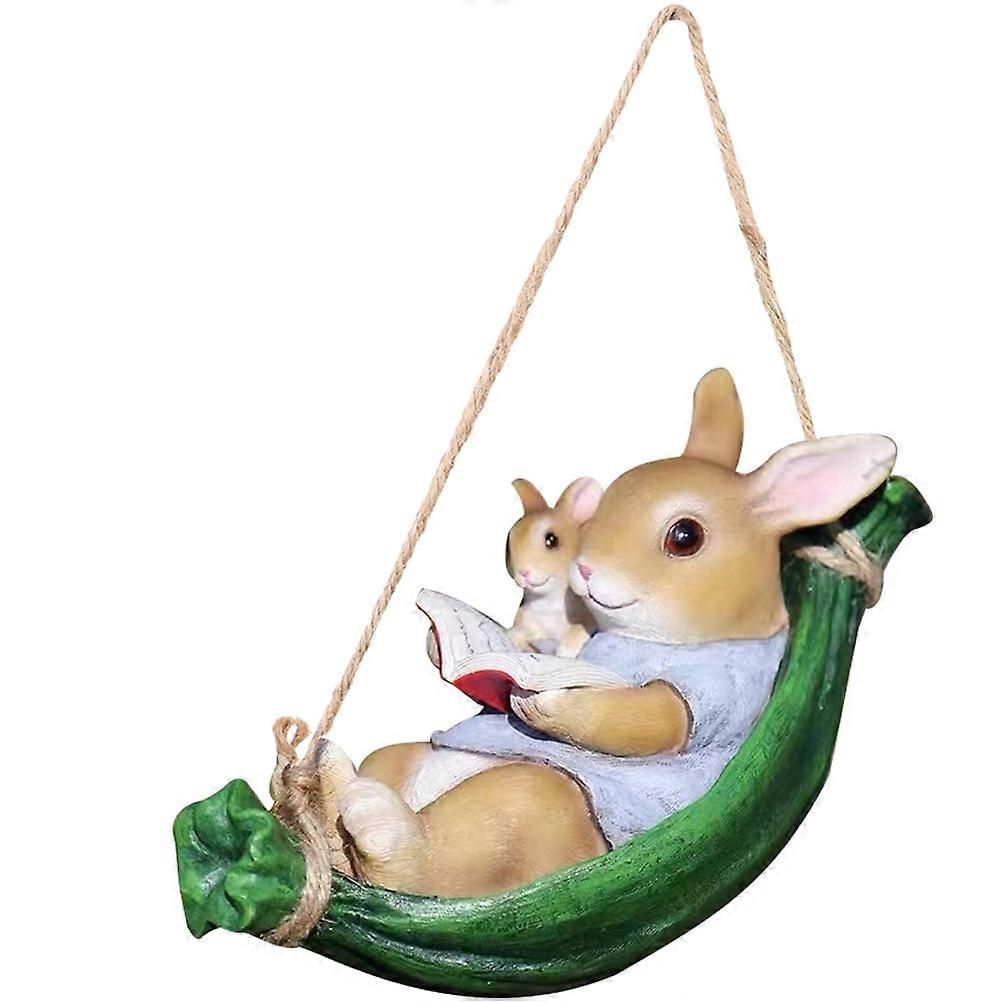 Rabbit Swing Statue Pendant Resin Rabbit on Swing Shape Garden Scene Layout Decor