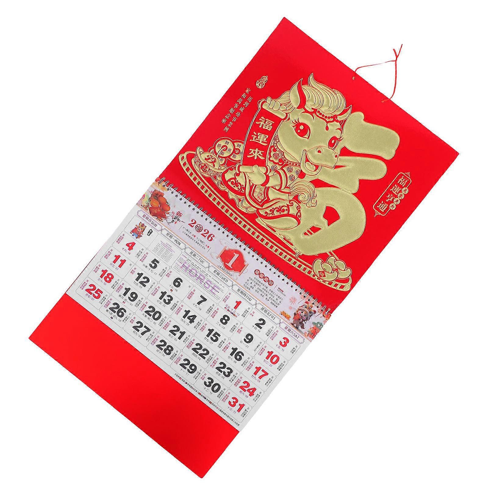 Rectangular Lunar Calendar With Unique Year Of The Horse Pattern For Office Decoration Stylish Time Management Aid 1Pack