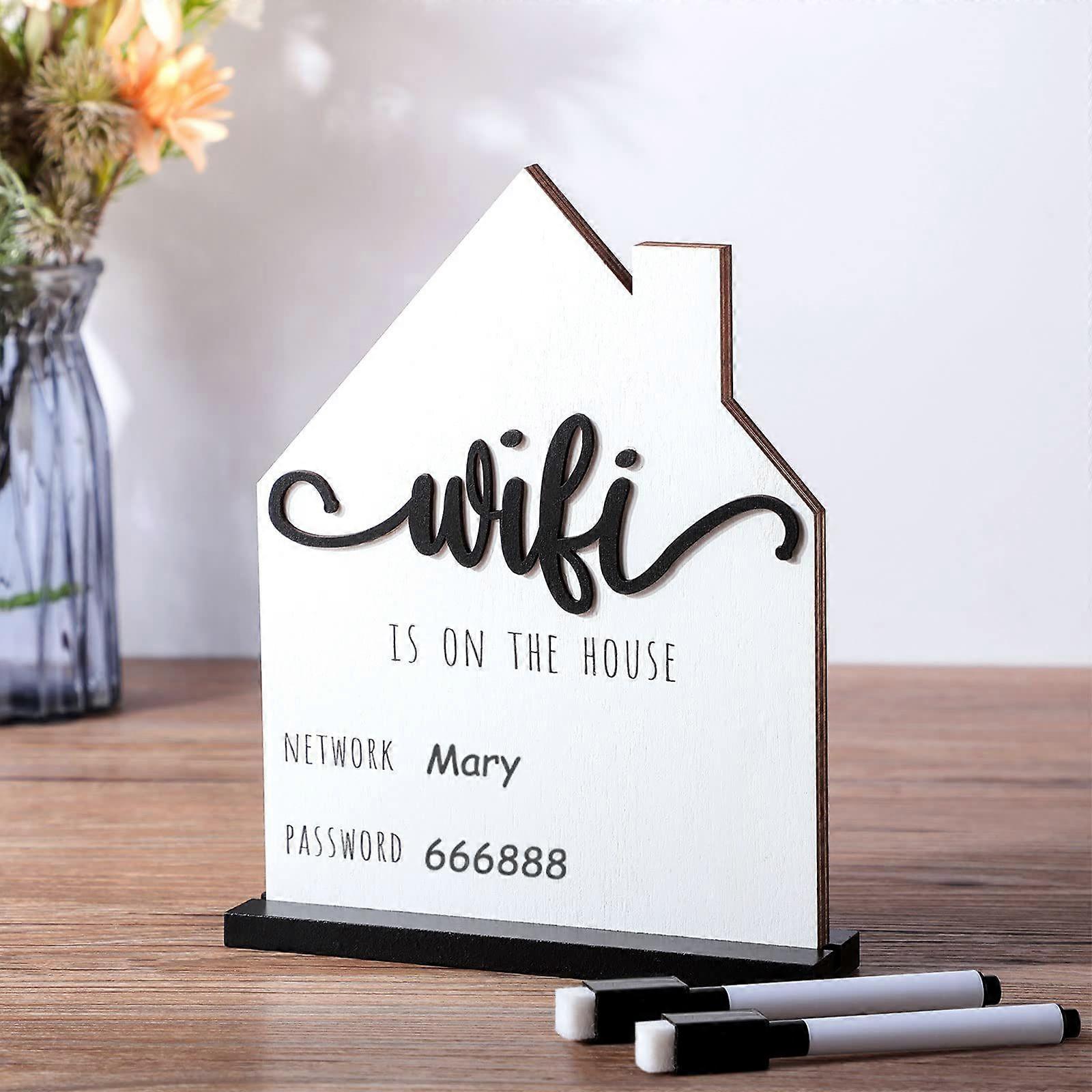 Reusable WiFi Password Sign with Chalkboard Pen, Wooden Display Board for Home and Business Use, White