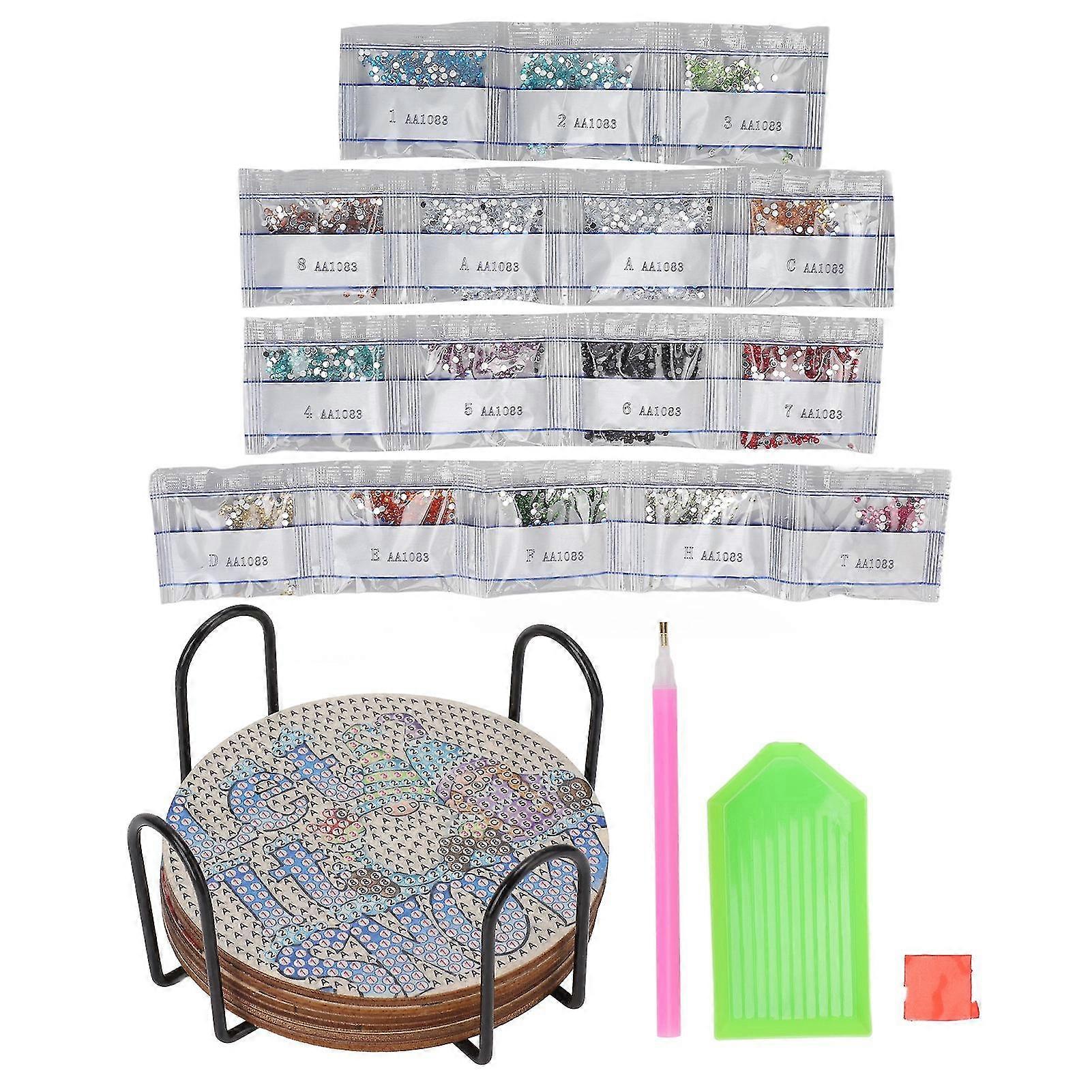 Rhinestone Painting Coasters Kit With Holder Clay Glue Clear Numbers Improved Hands On Skills Strong Adhesion For Beginner