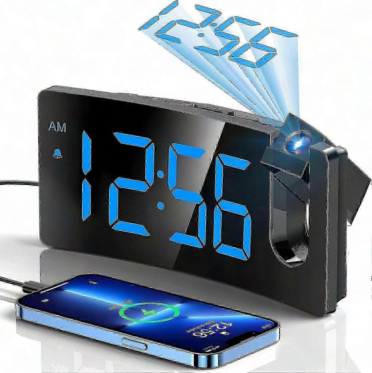 Display Type:DigitalStyle:Modern/Stylish/MinimalistSpecial Feature:Built-in Button Battery, Curved Screen, Integrated Design, Progressive Volume, Super Clear ProjectionProduct Dimensions:6.9"W x 3.15"HPower Source:Corded ElectricAge Range ():Suitable for all agesRoom Type:Kitchen, Bedroom, Living Room, Home Office, Kid's RoomShape:Rectangular, Curved ScreenIndoor/Outdoor Usage:IndoorMaterial:Polycarbonate (PC), Acrylonitrile Butadiene Styrene (ABS)Theme:Reading the time on your alarm clock when you first wake up isnt the easiest, which is why projection clocks are a time saver. This digital clock displays the time on your ceiling or wall large enough so you can read it, even without your glasses on. You dont have to squint at a small clock display, and you may not even need to roll over in bed to see what time it is., Gift, Rome Decor, Valentine's DayFrame Material:ABS/PCAre Batteries Included:NoMounting Type:TabletopAlarm Clock:YesNumber of Items:1Operation Mode:ElectricalItem Weight:10.5 ouncesAbout this item INTEGRATED PROJECTOR WITH A SHARP AND CLEAR IMAGE -- The arm of this digital clock swivels 180 degrees for optimum positioning, getting the fine and smooth time figure image on the wall or ceiling at the appropriate distance of 1.64-11.4ft(0.5-3m). The edges of the projected numerals are surprisingly sharp and clear without having to fiddle with a focus adjustment offered on some other projection clocks. LARGE LED DISPLAY & 3 BRIGHTNESS LEVELS -- The curved screen with 3.4*1.7inch large digits is easy to read in the dark, even when you are not quite awake or without your glasses. With 3 adjustable levels, you can dial down it to a level that is readable in the daytime but unobtrusive at night. It allows you to separately adjust the brightness of the face display and the projection display. CHARGE USB PORT AND MICRO USB CABLE -- This digital alarm clock includes a 5V/1A USB output interface that will allow you to still charge your phone or other mobile devices while the clock occupies an outlet, very good for phone battery health. ALARM WITH PROGRESSIVE BUZZER VOLUME -- This particular clock for bedroom comes with a progressive buzzer volume(75dB), the sound will get louder and faster, which is friendly for heavy sleepers who won't get used to the sudden loud sound. And pressing the big SNOOZE button at the top, you can get extra precious 9 minutes of sleep till the next loop of this alarm. BIG BUTTONS & EASY TO USE -- This digital clock has large control buttons which are conveniently lined up along the top of the case and are clearly marked with easily understood icons. Therefore, it is easier to reach and use without changing all the other settings. Friendly to operate for kids, seniors or the elder. BUILT-IN BACKUP BATTERY -- The package contains an AC adapter(AC100-240V,50/60Hz) to power the digital clock. When the power is off unexpectedly, the button cell battery(CR2032) built into the bedside clock can automatically save time & alarm settings (the time is not displayed and the alarm won't go off), no need to reset it again when the power is on. STYLISH AND UNIQUE CURVED DESIGN -- A curved screen mimics your eyes curvature for a more comfortable viewing experience and also can improve your health, too. Research Gate reports that a Harvard Medical School study found curved screens are better at reducing eyestrain and blurred vision and improving focus compared to regular screens. A GIFT FOR ANY OCCASION -- This digital clock is a great choice to show your care, and an unusual idea to surprise. A perfect gift for everyone, no matter for old or young, men or women, boy or girl. Also suitable for any festival like birthdays, Christmas, New Year's Day, Thanksgiving Day, Valentines Day, Father's Day, Mother's Day, etc.