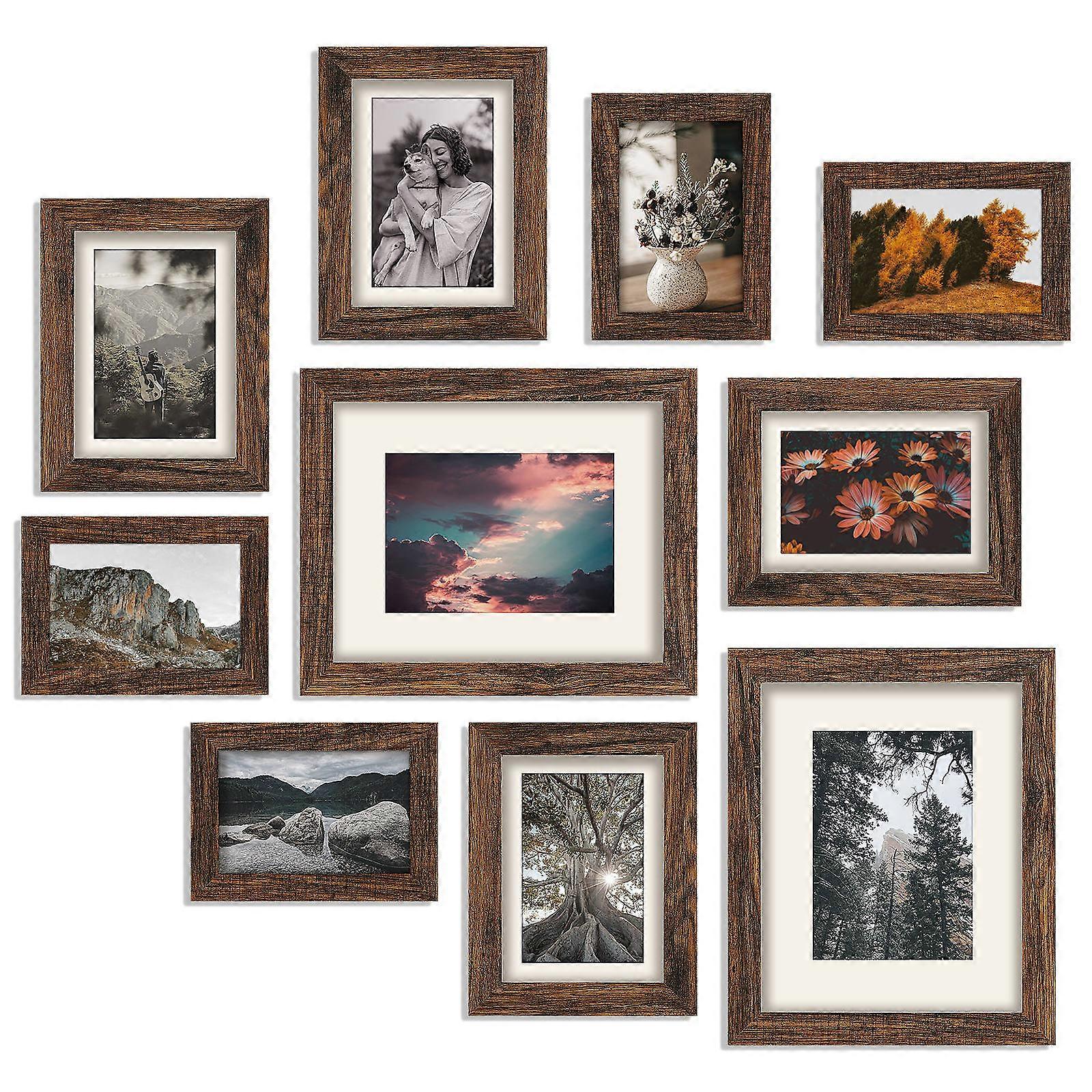 Rustic Wall Photo Frame Vintage Picture Frames Family Class Wall Gallery Kit Rustic Gray Photo Display 10Pcs
