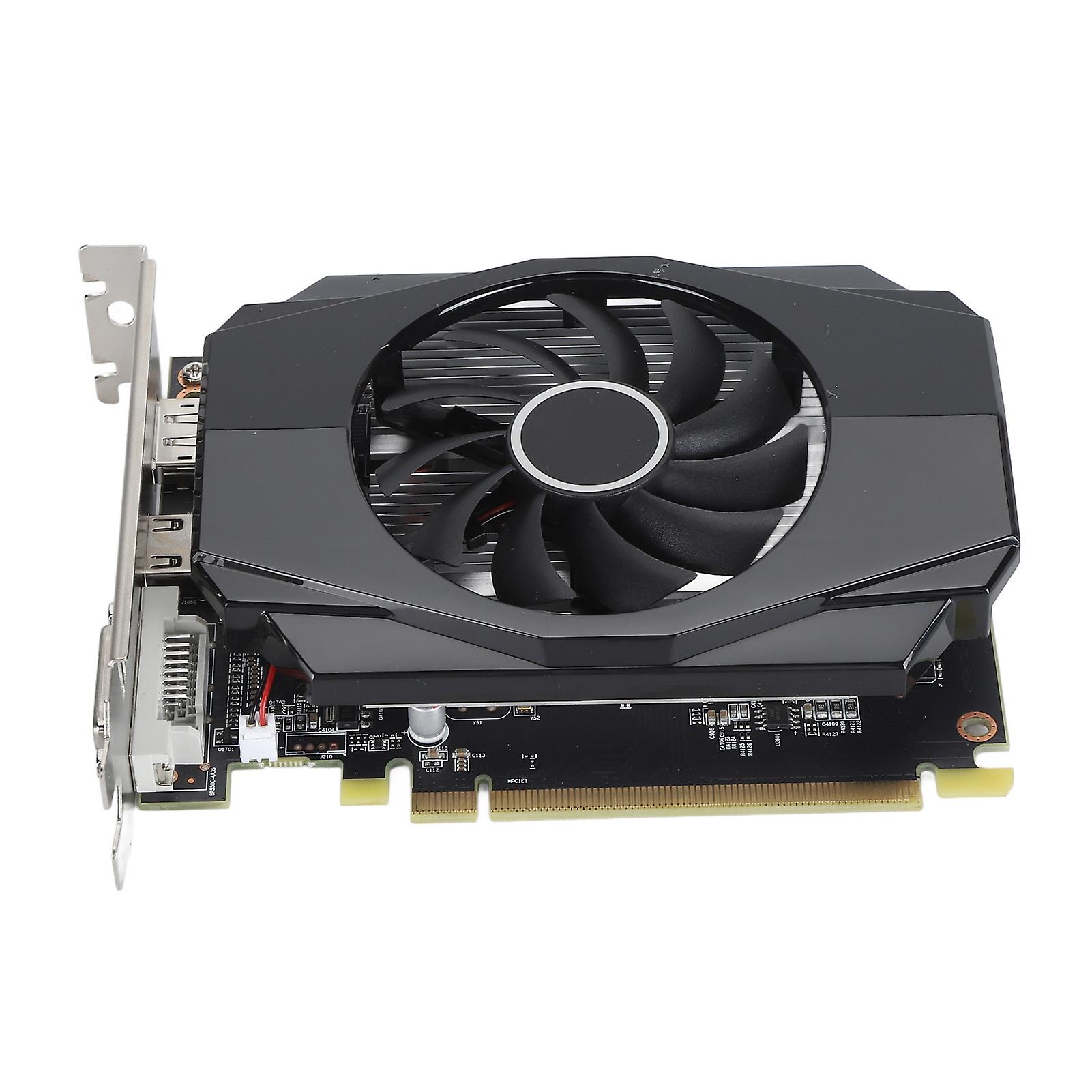 Feature 14G 128BIT GDDR5 GRAPHICS CARD: RX550 4G D5 graphics card has powerful image processing capabilities, 1183MHz core frequency, 6000MHz memory frequency; brings gamers ultra high performance, ultra high resolution and visually excellent gaming experience. 2PREMIUM MATERIAL: The RX 550 4GB GDDR5 graphics card is fully covered with a metal backplate, making the card stronger and more durable, and further aiding in heat dissipation; premium PCB materials and premium components are used to ensure long lasting, stable and high performance output. 3POWERFUL PERFORMANCE: Featuring for Polaris architecture and for AMD Liquid VR technology, the RX 550 graphics card delivers a colorful and immersive Virtual Reality (VR) experience that is easily compatible with VR headsets. 4COOLING SYSTEM: The RX 550 4GB graphics card features an all in one cooling module for fast cooling, with increased space for the cooling module to channel the powerful airflow from the fan to pass through quickly and take away core heat. 5COMPATIBILITY: RX550 4G D5 graphics card supports Displayport (1.4 HDR), HD Multimedia Interface (4K60), DVI D connector, and is compatible with for Windows 7(64), for Windows 10(64), for Ubuntu16.04(64) operating system.Item Type: RX550 4G D5 Graphics CardMaterial: PCB, Metal AluminumModel: RX550 4G D5 Extreme EditionCore Codename and Process: RX550 14nmUnified Shaders: 215Core Frequency: 1183MHzMemory Frequency: 6000MHzMemory Capacity and Specification: 4G 128bit GDDR53D Features: for DirectX 12, for Mantle, for OpenGL 4.5OS Features: for Windows 7(64), for Windows 10(64), for Ubuntu16.04(64)Cooler: Y8I 64 X Fan (No Copper Pipe, No Light)Fan Features: 2Pin, Adjustable Speed, no RPM Value DisplayedBus Interface: PCI Express 3.0 x8Output Interface: Displayport(1.4 HDR), HD Multimedia Interface (4K60), DVI DMaximum Resolution: 3840 x 2160 60Hz (Displayport HD Multimedia Interface)Sli( (NVLINK)/ Crossfire: Not SupportedPower Supply Design: 3 Phase CircuitExternal Power Supply: NoneDriver Installation: 1. The driver installation of the graphics card is required to be done at the first boot up after the hardware installation of the graphics card is completed. 2.graphics cards are divided into two series of products according to chipsets: "for AMD", please select the appropriate driver installation according to the actual product information, and you can complete the driver installation according to the following steps: Step 1: After system startup, enter the official website, and then click into the product center. Step 2: Check the model number on the box or the product nameplate on the back of the card. If the model number of your graphics card; if the model number of your graphics card begins with RX R, click "for AMD series" Step 3: According to the specific model number of your graphics card, go to the corresponding product page, click "Driver Download", and download the corresponding driver according to the version of the operating system that you have installed. Download the corresponding driver according to the version of the operating system you have installed. Step 4: After the driver download is complete, double click the file to start the installation, please follow the instructions of the installation wizard to install. Please follow the instructions of the installation wizard.