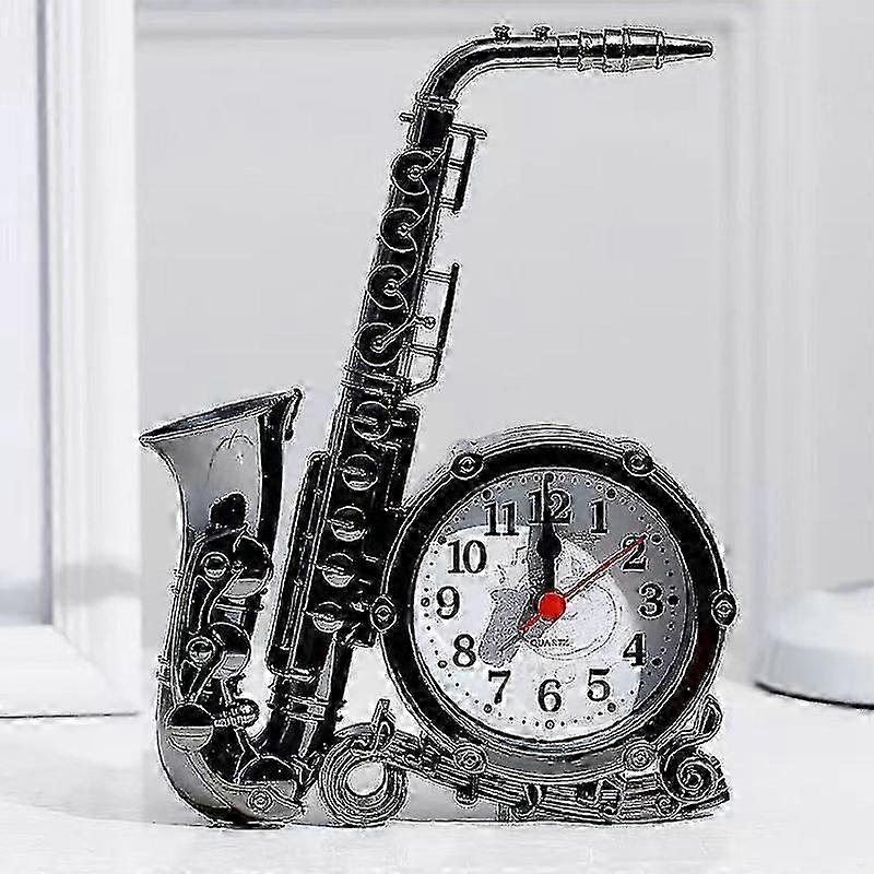 Saxophone Shaped Vintage Clock, Silent Retro Metal Round Alarm Clock for Dressing Table