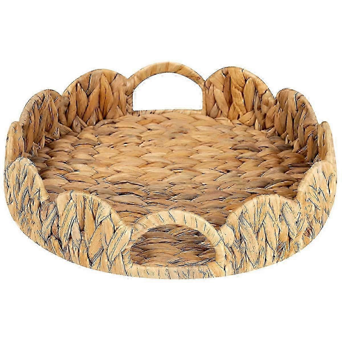 Scalloped Edge Round Tray, Round Serving Tray with Built-in Handles, Decoratve Tray for Coffee Table