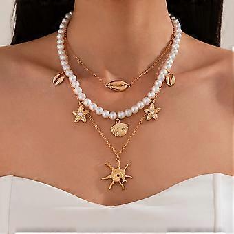 Bohemian Pearl Necklace, Holiday Travel Jewelry Gift, Starfish Pendant Necklace, Beach Shell Necklace, Ladies' Necklace