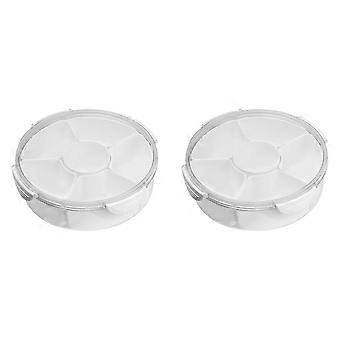 Valkoinen pyöreä 2-osainen välipalarasiasarja, 6-lokeroinen ilmatiivis tarjotin pähkinöille, kuivatuille hedelmille ja vihanneksille – jääkaappi- ja pakastinjärjestäjä