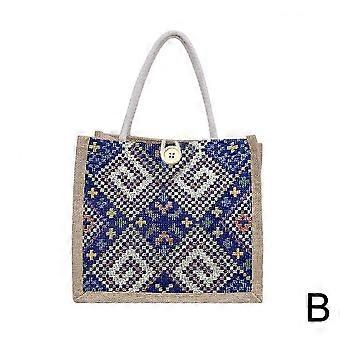 Etninen tyylinen kirjontakankainen olkalaukku, kannettava pellavainen bento-laukku