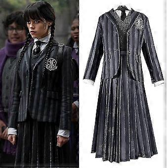 성인 수요일 애덤스 테마 드레스 코스프레 의상 가발 네버모어 학교 교복 드레스 셔츠 코트 넥타이 의상 할로윈 슈트_c*