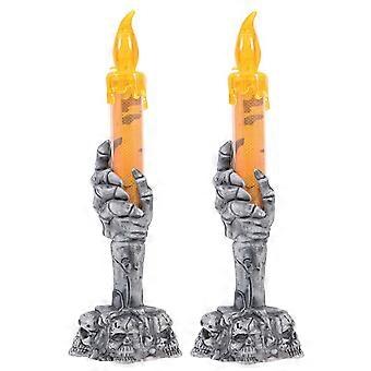 2개 배터리 작동 해골 손 램프 할로윈 테이블 캔들 조명 장식 유령의 집 파티용