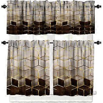 Ruskeat marmoriset keittiön verhot, moderni abstrakti kappaverhosetti – hopean/kullanvärinen foliokuvi, lyhyet verhot pieniin ikkunoihin, kahvilaan, olohuoneeseen, makuuhuoneeseen