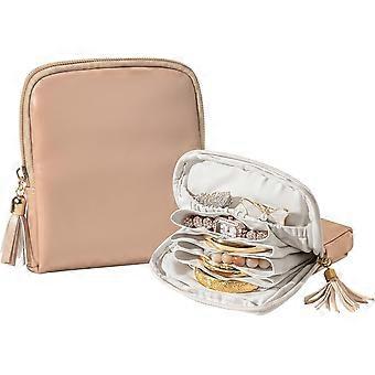 Minikokoinen nahkakorujen matkapussi kaulakoruille, korvakoruille, sormuksille ja rannekoruille – joululahja naisille ja tytöille – valkoinen