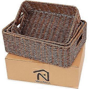 Baskets for Organizing, Undershelf Wicker Storage, Hand Woven Organizer for Closet Organization, Rectangular, Set of 3, Toffee