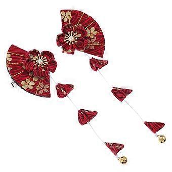 일본식 머리핀 1쌍 빨간색 패브릭 부채 모양 바레트 우아함 소녀 장식용