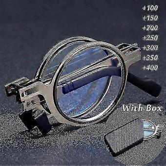휴대용 접이식 독서 안경 남성 금속 라운드 스퀘어 안티 블루 라이트 안경 노안 안경 프레임 디옵터 +1.0에서 +4.0