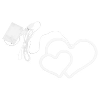 화이트 더블 하트 네온 사인 LED 램프 장식용 2개 야간 조명