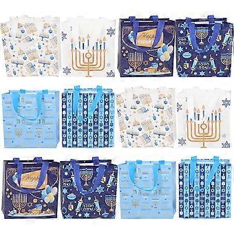 손잡이가 달린 재사용 가능한 부직포 소재의 하누카 선물 가방 12개 세트 (파티 답례품, 축제 선물, 파티 용품용)