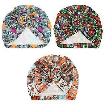 3pcs 여성 터번 아프리카 모자 민족 스타일 매듭 모자 여성 보닛 폴리 에스테르 모자 랩
