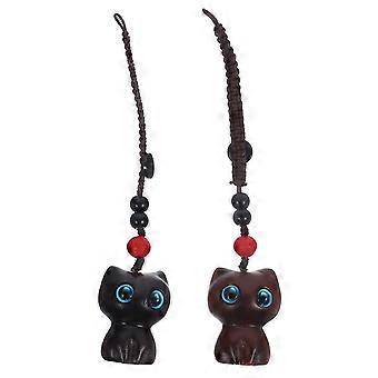 2개 고양이 인형 열쇠고리 펜던트 나무 고양이 열쇠고리 작은 축제 열쇠고리 펜던트 가방 장식