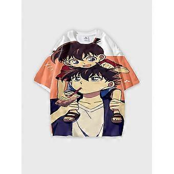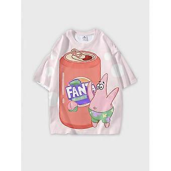 T-paita pyöreä kaula-aukko Sarjakuvakuvio löysä lyhythihainen D365