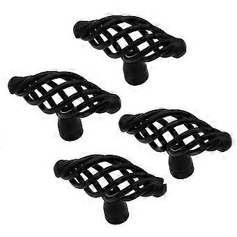 4개 합금 문 손잡이 북유럽 새장 디자인 당김 손잡이 크리에이티브 서랍 손잡이 캐비닛 문 손잡이 가구 손잡이 (검정색)