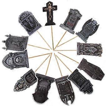 케이크 나무 컵케이크 토퍼 묘지 케이크 장식 실내 및 실외 파티 24Pcs 용 묘비 모양 할로윈 장식