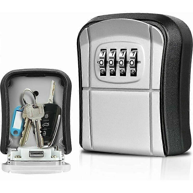 Secure Wall Key Box with 4-Digit Digital Code, Resettable and Waterproof, for Home, School, Office, Garage (Gray)