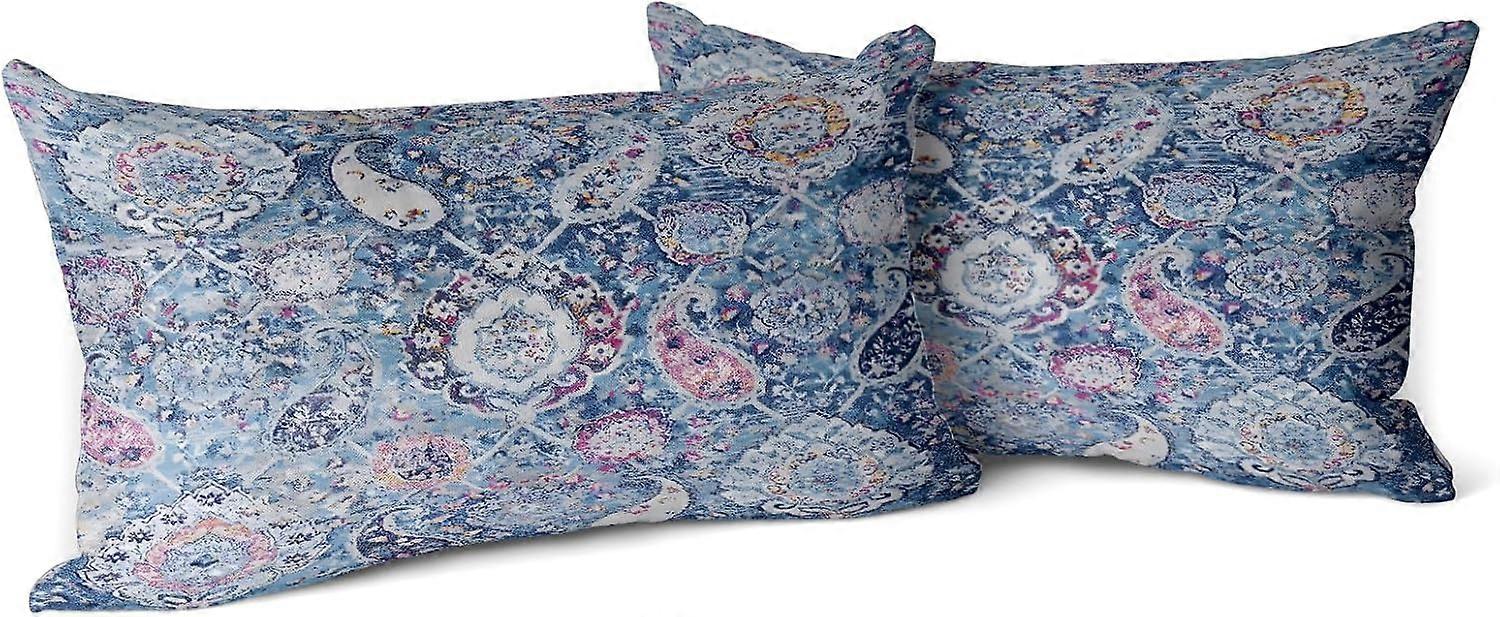 Set of 2 Carpet Pattern Boho Style Ethnic Design Decorative Polyester Throw Waist Pillow Case Cushion Cover Pillowcase 12x20 Inches Boho 16